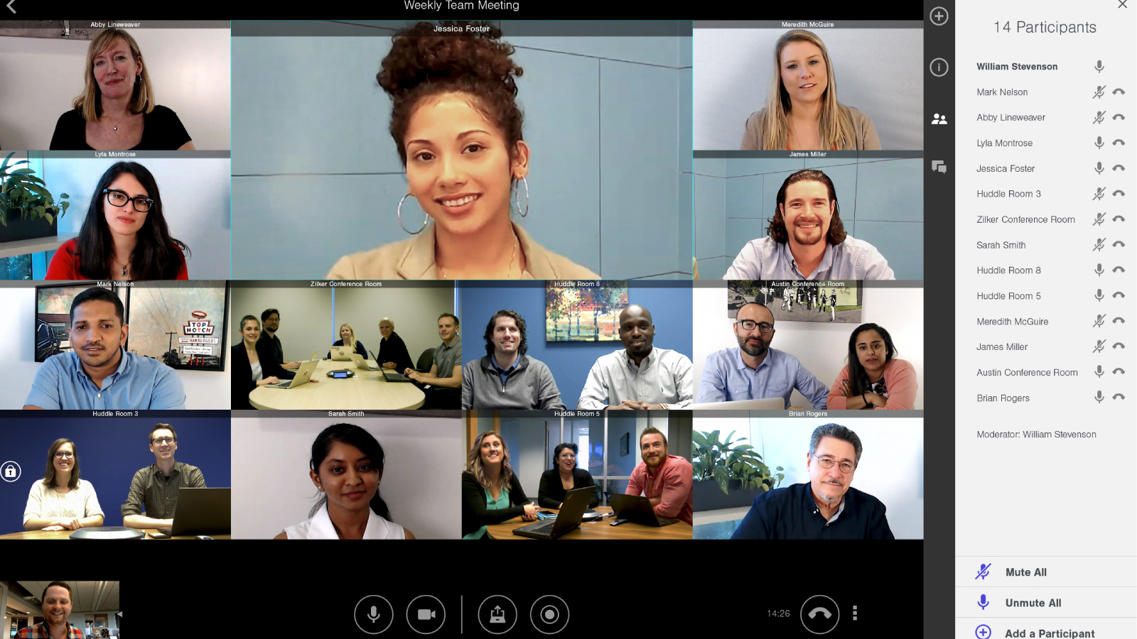 Unlike some of the other video conferencing software out there, like Cisco WebEx and LogMeIn's join.me, Lifesize is not bound to your web browser and can instead be found on a wide variety of platforms. You can download and install Lifesize on Windows 7 or newer, Mac OS X 10.10 or newer, Android 7 or later and iOS 10 or later. In terms of video and audio quality, you can expect full-fledged 1080p video at up to 60 frames per second (fps) and wideband HD audio with built-in echo cancellation, potentially giving the Dolby Voice-equipped BlueJeans a run for its money.