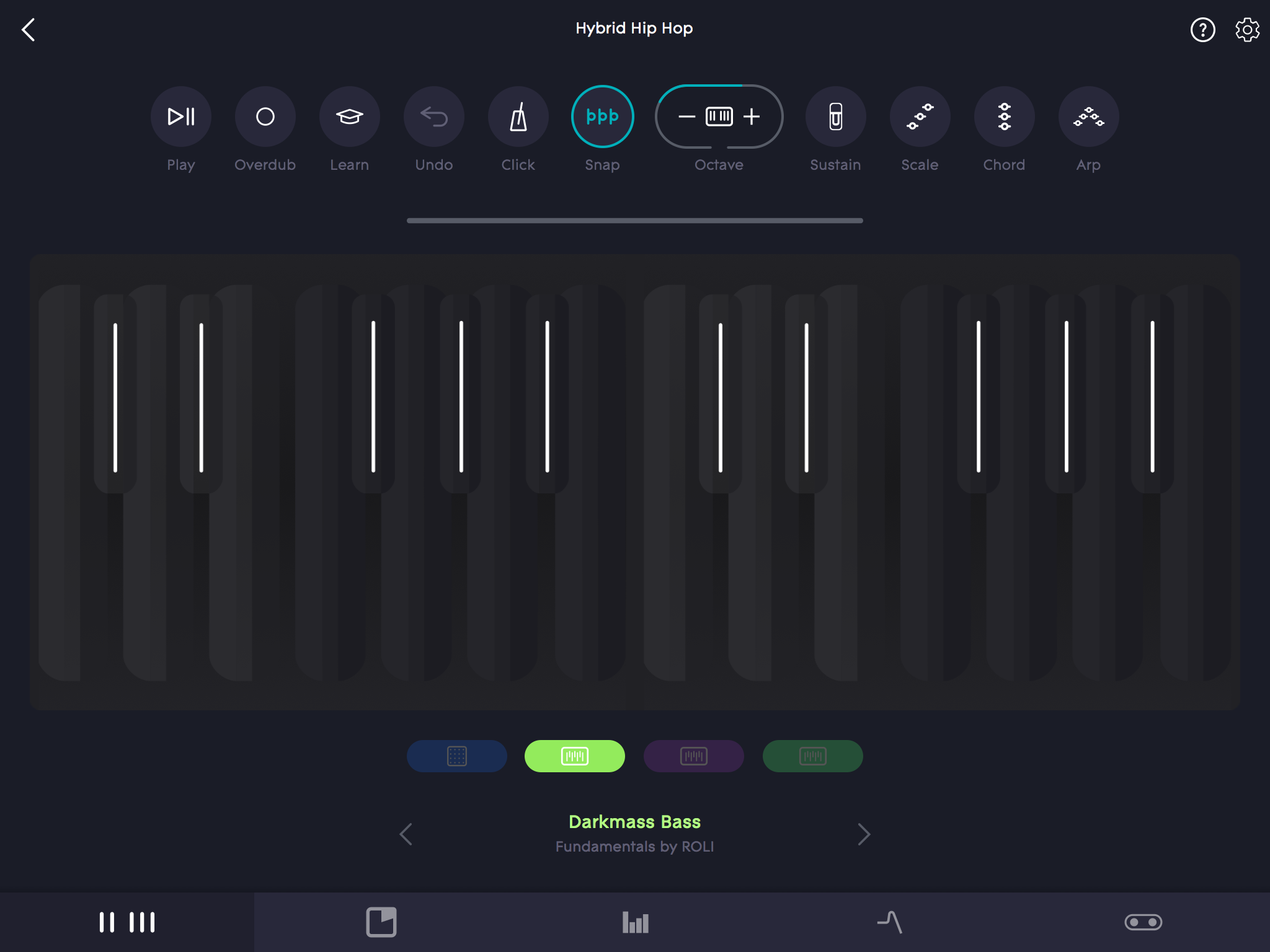 Roli’s PLAY app is very straightforward – choose a theme for your mix, then add in different layers for Bass, Drums, Leads, and Chords. From there you can rearrange your mix as you see fit, before uploading it to Roli’s servers to share via a web browser link. It’s limited in its capacity for music production, but it’s a fantastic introduction to using Roli’s products.