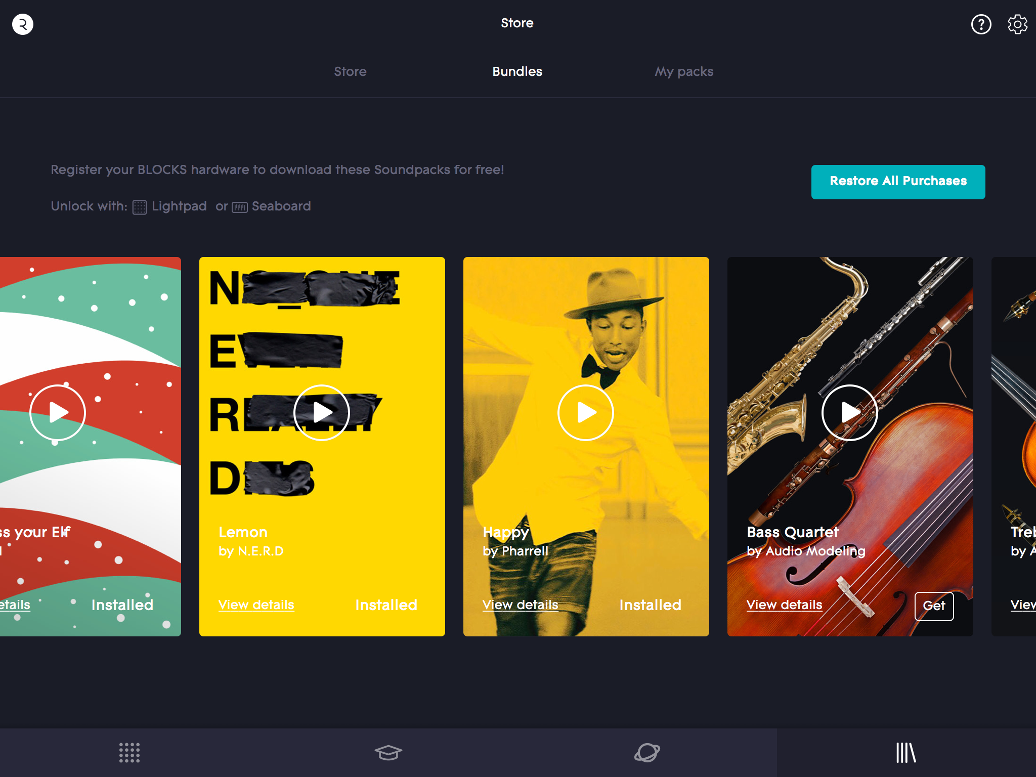 You can also purchase additional soundpacks from artists such as A. R. Rahman, Pharrell, Steve Aoki, and more, with each soundpack coming in at an average price of $6.99, thought the Songmaker Kit conveniently allows you to download most of these for free after you register your device.